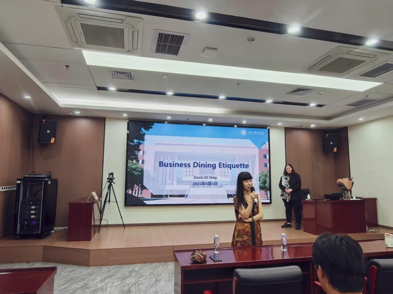 本次讲座不仅为同学们揭开了商务餐桌礼仪的“神秘面纱”,更让大家深刻领悟到:礼仪绝非刻板的规矩束缚,而是在跨文化商务交流中传递尊重、展现个人素养与专业魅力的重要纽带,是未来职场中搭建人际关系、促成高效合作的“软实力”。