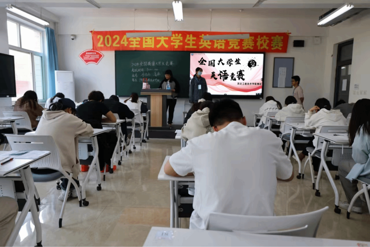 本次竞赛由外语教学部联合校英语社组织开展,在本部和灵寿两个校区同时进行,共设置14个考场,监考和考务人员达30余人。通过前期广泛宣传和积极动员,全校共有425人报名参赛,人数创历史新高,涉及各个公司乃至各个年级,涵盖C类(非英语专业本科生)、D类(艺术类本科生)两个类别。