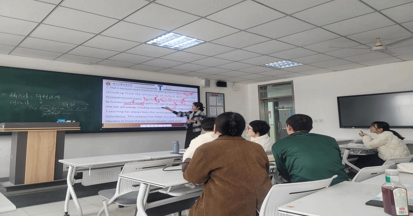 为深入贯彻落实新时代教育发展理念,推进新科建设与教育数字化战略行动,3月14日下午,外语教学部英语工科二类教研室在4号楼203举办人工智能与教育主题专项磨课活动。本次活动以三全育人综合改革为导向,通过教学创新实践深化内涵建设,着力构建具有高阶性、创新性和挑战度的两性一度金课体系。此次研磨课活动由教研室主任牛晓静老师主持,教研室全体教师参与。
