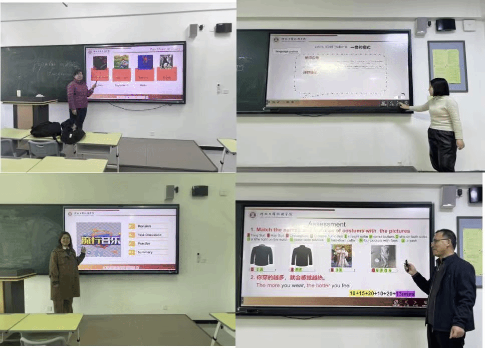 在本次活动中,教研室每一位教师精心打磨,带来了精彩纷呈的教学示范。马丽娜老师的产出式教学有效提高了课堂教学效率;张鑫老师的词汇教学法高效助力员工拓展英语词汇;赖信含老师将艺术生专业特长和英语教学内容进行了巧妙融合;樊晓静老师严谨连贯的教学设计为英语课堂教学活动提供了新思路。在每一场教学展示的热烈氛围中,教师们踊跃参与讨论,各抒高见,相互借鉴,携手探索更加适合艺术类员工的英语教学新策略。