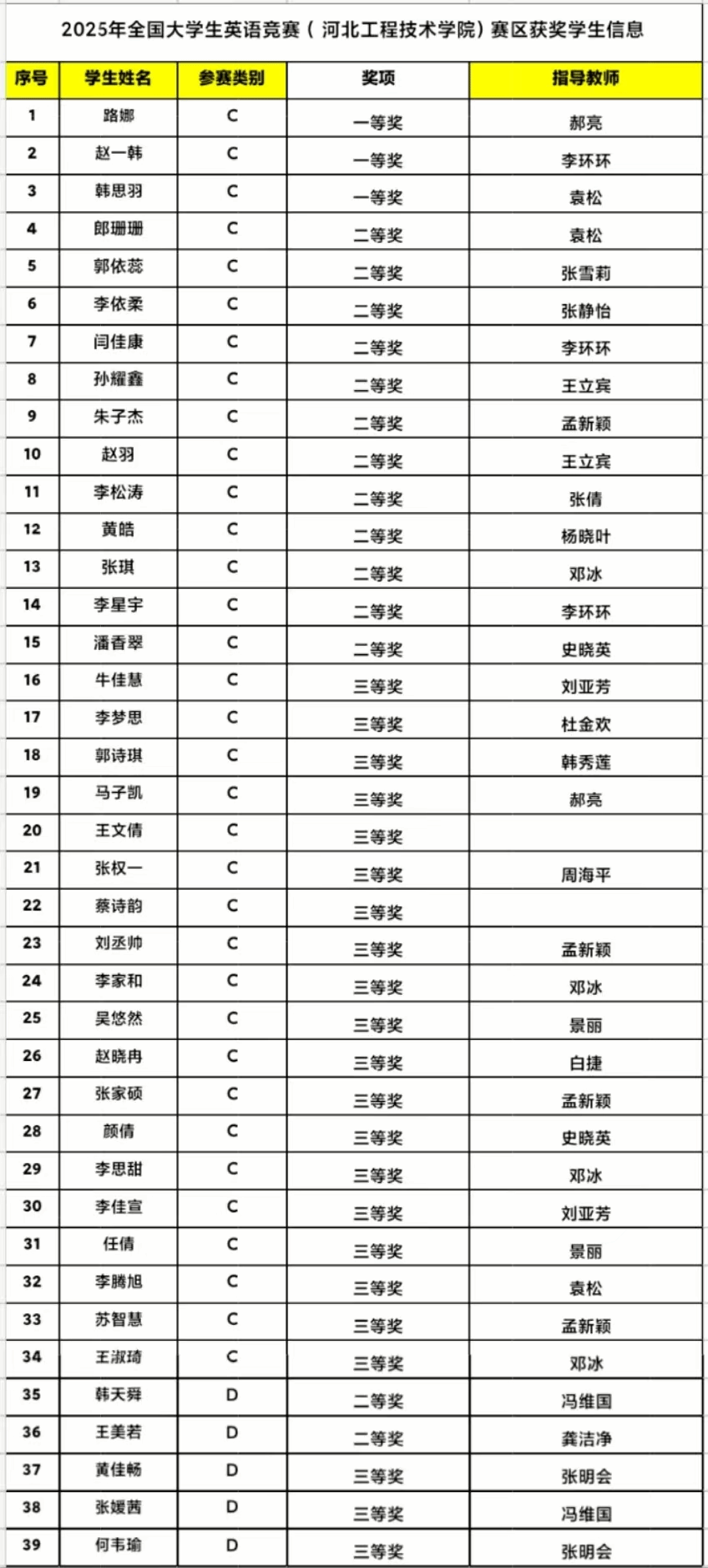 2025年全国老员工英语竞赛获奖名单公示